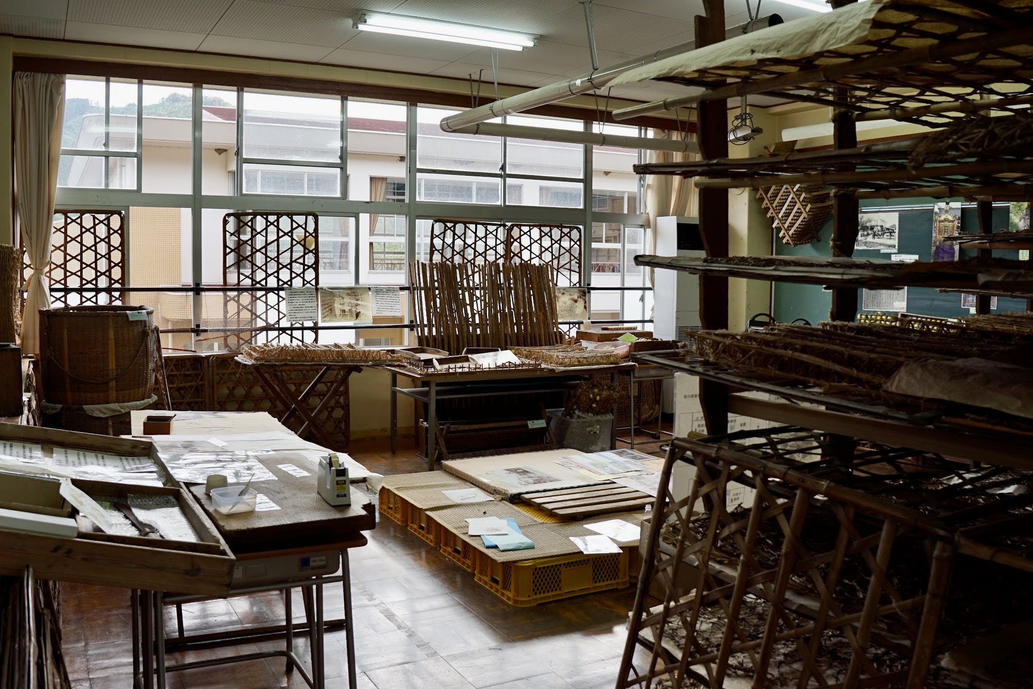 お蚕さんの教室では養蚕に関わる様々な蚕具や資料をご覧いただけます。